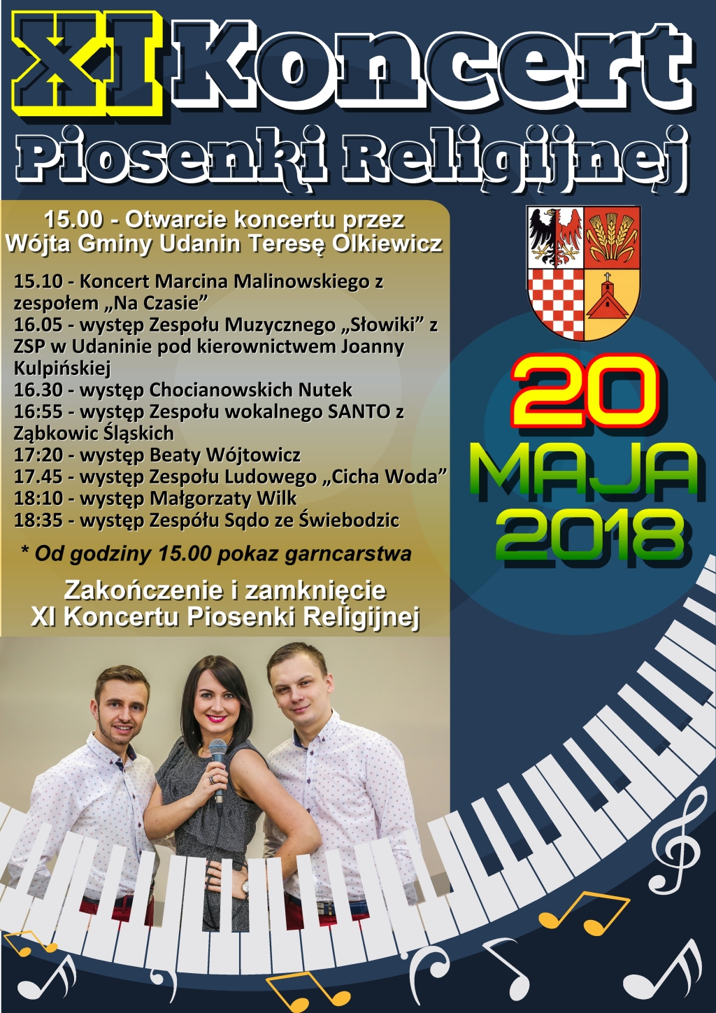 20 maja w Udaninie odbędzie się XI Koncert Piosenki Religijnej. Zapraszamy wszystkich od godziny 15.