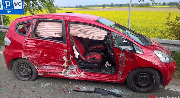 Dzisiaj tj. 9 maja około godz. 8.20 na zjeździe z autostrady A4 w Kostomłotach doszło do wypadku z udziałem samochodu osobowego i ciężarowego.