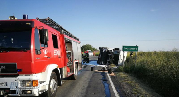 Do zdarzenia doszło 31 maja na drodze wojewódzkiej nr 346 w Sobkowicach. Tuż za zakrętem przewróciła się cysterna z ciekłym tlenem.