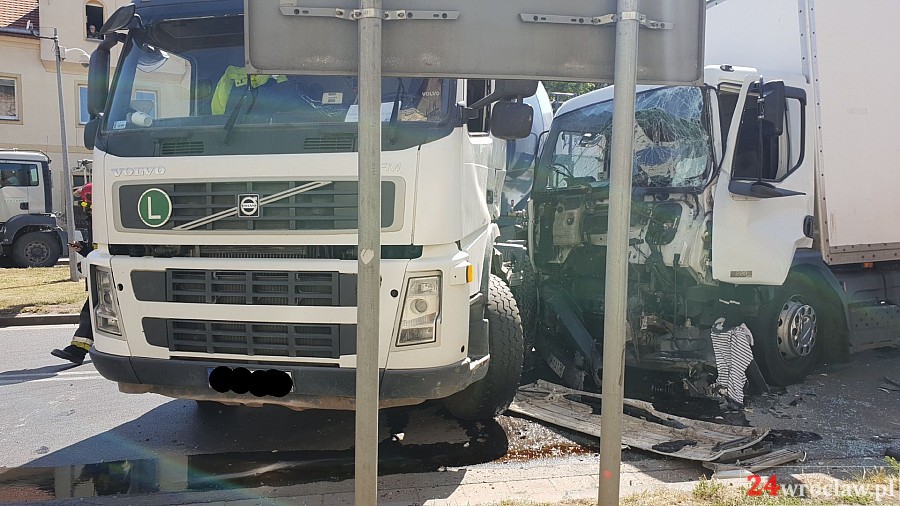 W centrum Kątów Wrocławskich zderzyły się dwie ciężarówki. Utrudnienia potrwają kilka godzin. Na szczęście nikomu nic się nie stało.