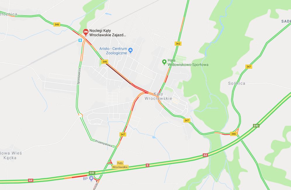 Do wypadku doszło w centrum miasta na skrzyżowaniu ulic Popiełuszki i 1-go Maja. Z uwagi na to, iż jest to główne skrzyżowanie w Kątach Wrocławskich, ruch w mieście jest całkowicie zablokowany.