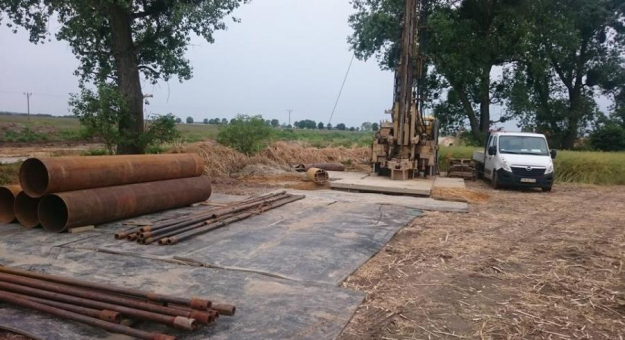 W tej chwili wykonawca prowadzi prace wiertnicze dla studni P1, przewiercając kolejne warstwy gruntu.