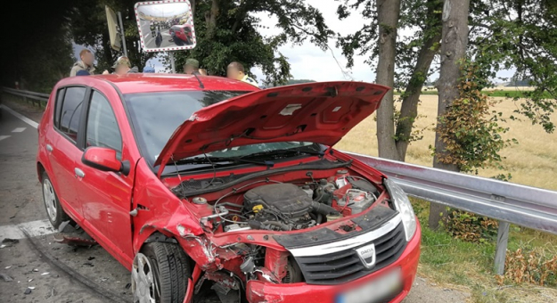 W sobotę około godz. 8:40 na zjeździe w Kostomłotach zderzyły się dwa samochody osobowe marki Dacia i Kia.