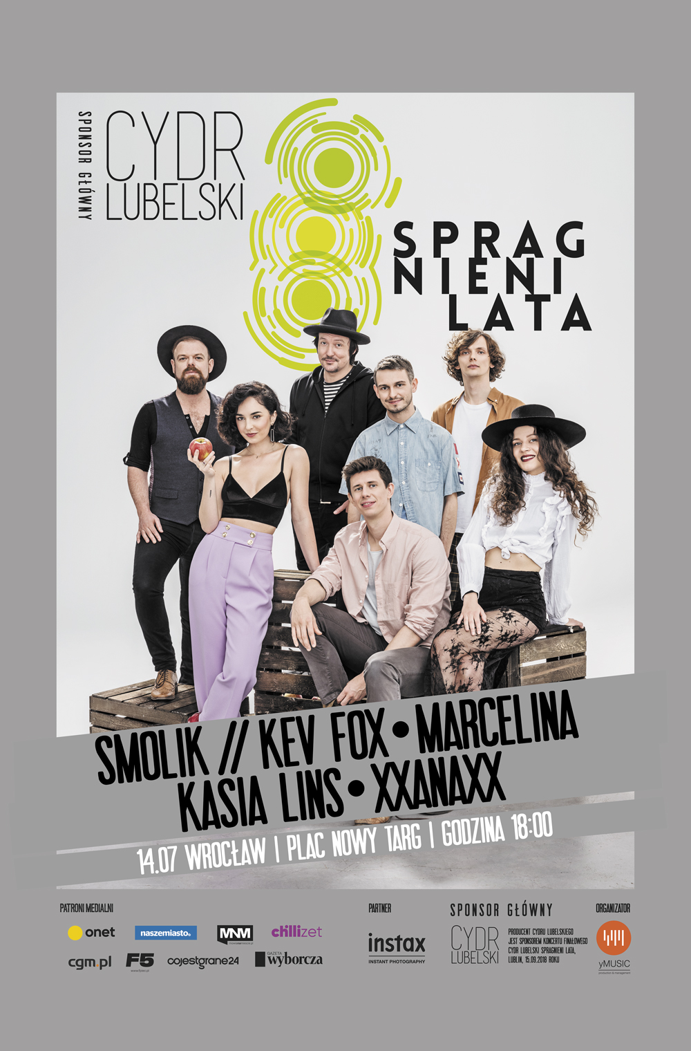 Duet Smolik//Kev Fox, Marcelina, Kasia Lins i gościnnie Xxanaxx zagrają podczas trasy koncertowej Cydr Lubelski Spragnieni Lata we Wrocławiu.