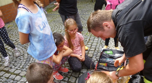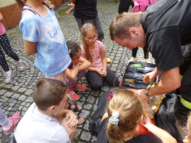 Dzieciom przedstawiono sprzęt i wyposażenie jednostek ochrony przeciwpożarowej; omówiono także zasady bezpiecznego wypoczynku w okresie letnim.