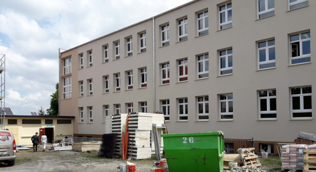 Obecnie trwają prace wykończeniowe. W szkole fachowcy ocieplają ostatnie ściany budynku od strony patio oraz łącznika z budynkiem byłej sali gimnastycznej. Trwają też roboty związane z wymianą CO. W przedszkolu natomiast boczne schody wykładane są płytami granitowymi oraz trwa ostatnie malowanie ścian budynku. W obydwu obiektach pozostają jeszcze do wykonania drobne prace związane z elektrycznością.