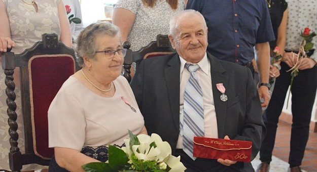 Małżeństwo otrzymało pamiątkowe medale za długoletnie pożycie małżeńskie od prezydenta RP, które wręczył burmistrz oraz list gratulacyjny i prezenty od przewodniczącego rady i kierownik średzkiego urzędu stanu cywilnego.