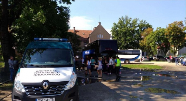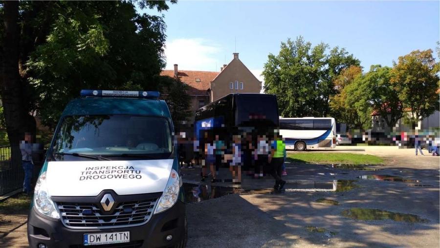 Kontrola autokarów przez inspektorów w Kątach Wrocławskich fot.: Główny Inspektorat Transportu Drogowego