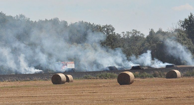 Na miejsce zadysponowano kilka zastępów straży pożarnej. Dym z pożaru był widoczny z drogi wojewódzkiej nr 345 i ościennych miejscowości. Oprócz pola ze skoszonym zbożem paliło się także kilka beli sprasowanej słomy.