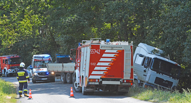 Dyżurny Komendy Powiatowej Policji w Środzie Śląskiej otrzymał zgłoszenie dotyczące czołowego zderzenia dwóch pojazdów. - Policjanci na miejscu ustalili, iż kierujący samochodem ciężarowym marki Man z naczepą, 29-letni mieszkaniec powiatu średzkiego, na łuku drogi z nieustalonych przyczyn stracił panowanie nad pojazdem. Następnie zjechał na przeciwległy pas ruchu i zderzył się czołowo z 36-letnim kierującym samochodem osobowym marki Volkswagen - informuje asp. sztab. Marta Stefanowska oficer prasowa KPP w Środzie Śląskiej.