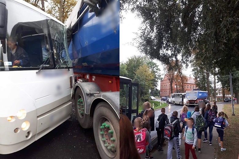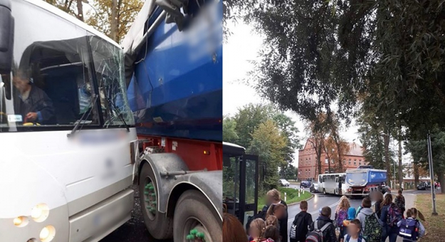 Do zdarzenia doszło 11 września około godz. 7.50. Na zakręcie przy szkole podstawowej w Ciechowie zderzyła się ciężarówka z autobusem.