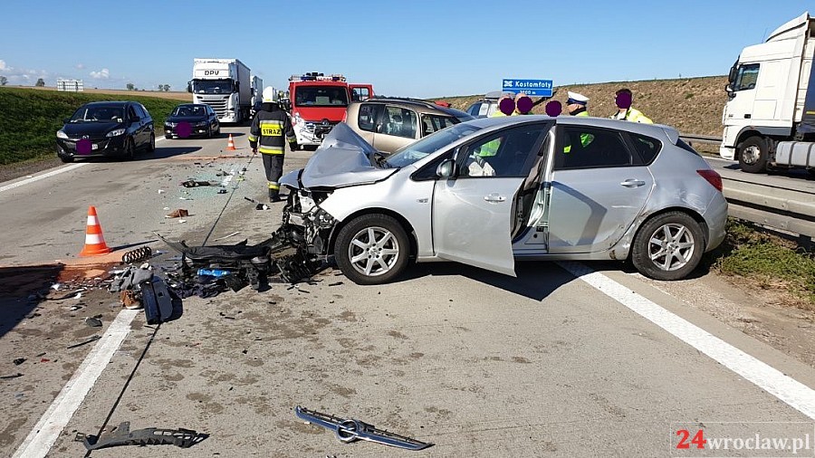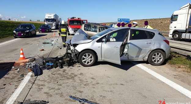 Na autostradzie A4 pomiędzy węzłami Kostomłoty a Kąty Wrocławskie doszło do zderzenia trzech pojazdów osobowych i smochodu ciężarowego. Na szczęście w tym zdarzeniu nikt poważnie nie ucierpiał. Przejazd autostradą w stronę Wrocławia był utrudniony, ale możliwy.