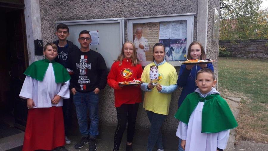 Osoby, które do puszek wrzuciły datki w podziękowaniu otrzymały drobne niespodzianki. W akcję zaangażowani byli: Zuzanna Szczepanowska, Ewa Lipińska, Natalia Bojczuk, Ola Mazur, Angelika Zator, Alicja Szczur, Amelka Domin, Szymon Rutkowski, Oliwier Kopeć, Kamil Szczerba, Kamil Rasała, Julia Bereżańska, Maja Mikła, Zuzia Cieplik, Hania Mikła, Marlena Baniecka, Julia Bator i Beata Grubasz pod opieką katechetki Violetty Leńskiej i rodziców.