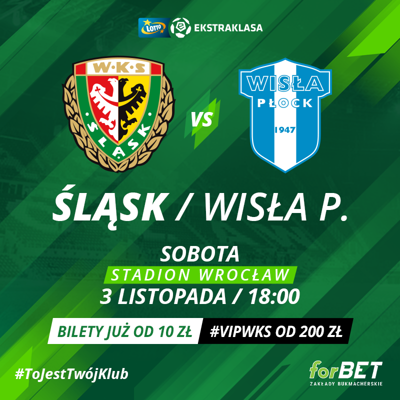 W sobotę 2 listopada na Stadionie Wrocław miejscowy Śląsk w ramach 14. kolejki Lotto Ekstraklasy podejmie Wisłę Płock. Początek spotkania o 18.00.