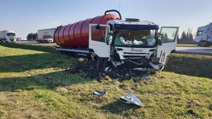 Na 147 kilometrze autostrady A4 doszło do wypadku z udziałem dwóch samochodów ciężarowych marki scania i mercedes. - Zgłoszenie wpłynęło o 11:56, na miejscu byliśmy o 12:07. Po alarmowym przybyciu na miejsce zdarzenia ustalono, że na 147 kilometrze A4 w kierunku Zgorzelca doszło do wypadku z udziałem dwóch samochodów ciężarowych. W pojazdach podróżowały łącznie dwie osoby. Jeden ciągnik siodłowy wraz z cysterną leżał w rowie, drugi wraz z lawetą stał na pasie awaryjnym. W momencie przybycia jednostek ochrony przeciwpożarowej całkowicie wstrzymano ruch w kierunku Zgorzelca. W zdarzeniu ucierpiał jeden z kierowców, któremu dzielono wsparcia psychicznego do momentu przybycia zespołu ratownictwa medycznego, drugi kierowca odmówił udzielenia kwalifikowanej pierwszej pomocy. W wyniku zdarzenia nie doszło do wycieku płynów eksploatacyjnych oraz nie było zagrożenia chemiczno-przyrodniczego. Cysterną nie przewożono żadnego ładunku. - informuje mł. bryg. Mariusz Urbaniak oficer prasowy Państwowej Straży Pożarnej we Wrocławiu.