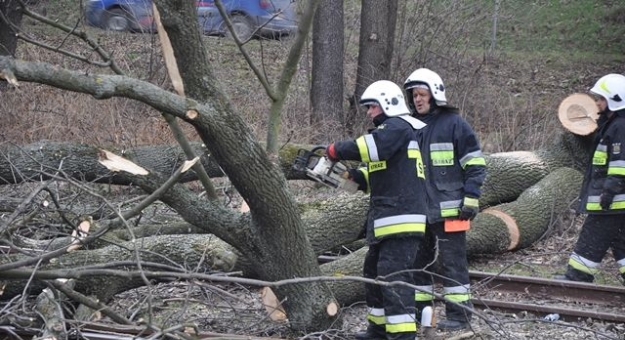 Przez silny wiatr w kilku miejscowościach powalone były drzewa i gałęzie. Drogi były zablokowane.