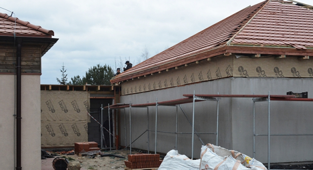 Na jakim etapie teraz jest inwestycja? - Niemal gotowe jest pokrycie dachowe. Zrobiona jest już elewacja zewnętrzna. Panowie teraz malują drewniane deski, którymi obita będzie elewacja. Jest wybudowana ścianka wewnetrzna oddzielająca łazienkę i pociągnięta sieć energetyczna i informatyczna. W przyszłym tygodniu przychodzą do nas panowie od tynków. Później ma być podwieszony już sufit. Zostanie nam hydraulika - mówi dyrektor przedszkola Beata Zając.