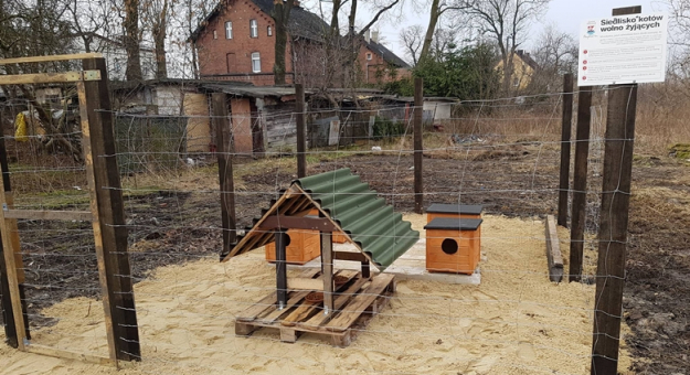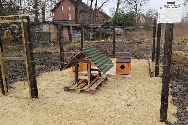 Kocie domki zostały ustawione na działce przy przejściu między ul. Dworcową a ul. Klonową w miejscowości Malczyce. - Przeznaczony do tego teren został ogrodzony, aby do jego środka nie mogły przedostać się psy.