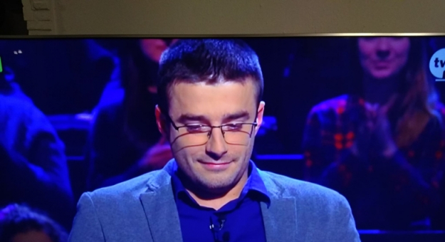 Mateusz świetnie poradził sobie z pierwszymi pytaniami, wykorzystał dwa koła ratunkowe. Skorzystał z koła ratunkowego 'telefon do przyjaciela' i zadzwonił do swojego taty. Poległ niestety przy pytaniu za 10 tys. złotych. "Pozycję lordosis przyjmuje: robaczek świętojański w locie, kotka w rui, maratończyk na starcie, czy żerująca ośmiornica". Mateusz zaznaczył odpowiedz z maratończykiem, jednak poprawną była... kotka w rui. Średzianin wygrał gwarantowane tysiąc złotych.