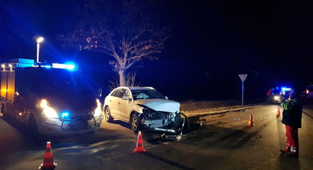 Pasażer i kierowca z audi zostali zabrani do szpitala przez zespół ratownictwa medycznego. Strażacy zabezpieczyli i oświetlili miejsce zdarzenia, zneutralizowali rozlane płyny eksploatacyjne. Ich czynności w miejscu wypadku trwały do późnych godzin wieczornych.