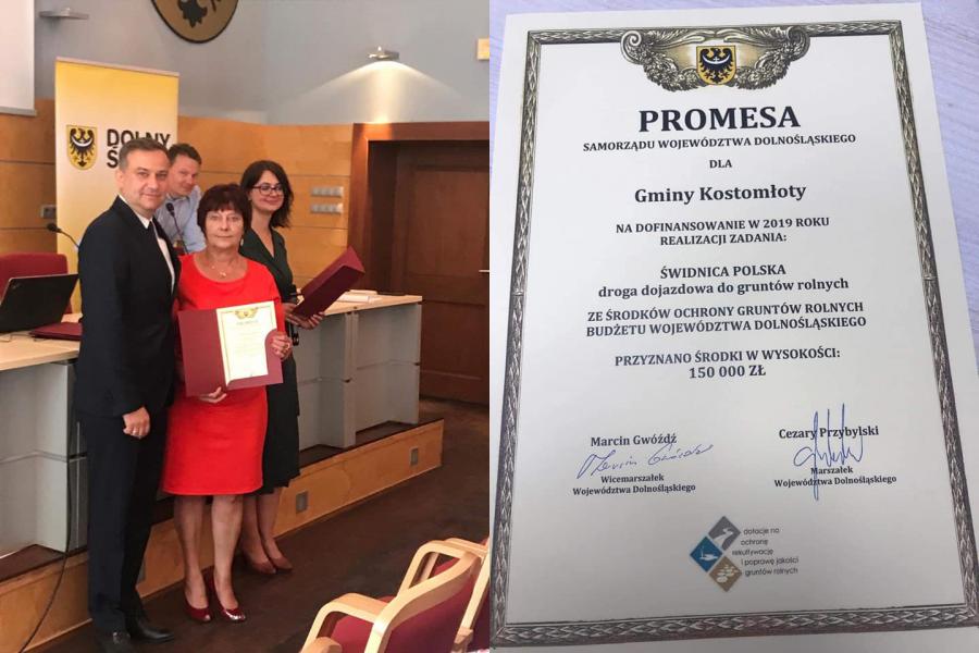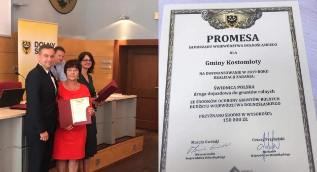 24 czerwca w siedzibie Urzędu Marszałkowskiego przedstawiciele powiatu średzkiego i trzech gmin z naszego powiatu otrzymali z rąk wicemarszałka Marcina Gwóździa promesy na sfinansowanie tych inwestycji:
