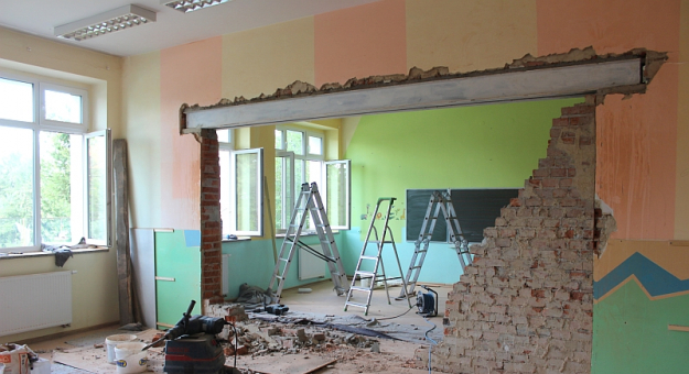 Zakres prowadzonego remontu obejmuje powiększenie obecnej stołówki o przyległą do niej klasę, wyburzenie ściany oraz montaż drzwi przesuwnych. Kuchnia zyska nową posadzkę i ścianki działowe przy zlewozmywakach. Całość kuchni i jadalni będzie pomalowana farbami emulsyjnymi. Koszt inwestycji wynosi przeszło 71 tys. złotych. Za niemalże 30 tysięcy zakupione zostanie wyposażenie pomieszczeń, m.in. patelnie, garnki, krzesełka. Na początku lipca tego roku samorząd otrzymał dofinansowanie na to zadanie w wysokości 80 tys. złotych.