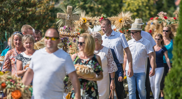 Wydarzenie zainaugurowała msza święta, po której w uroczystym pochodzie dożynkowym uczestnicy święta plonów przeszli na pobliskie boisko.