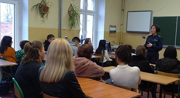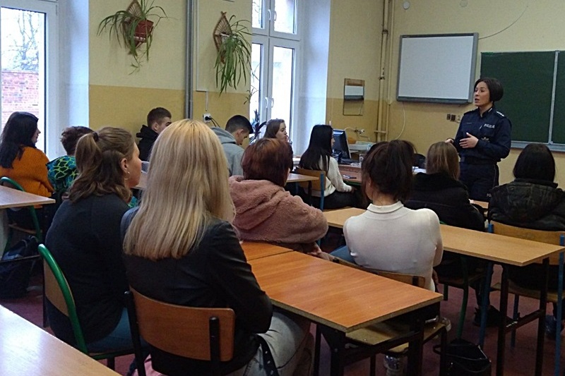 Jak bronić się przed cyberprzemocą, zachować na stoku i czym grozi sięganie po używki? Policjanci edukowali uczniów średzkich szkół.