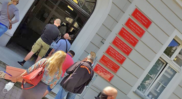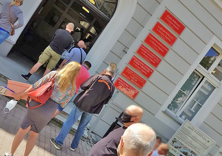 W pomieszczeniu wydziału komunikacji - z uwagi na aktualną sytuację emidemiologiczną - może przebywać maksymalnie 4 petentów, w tym jeden przy stanowisku biura podawczego lub kasy. Kolejka ustawia sie zatem przed budynkiem starostwa oraz w przejściu. W tej sprawie interweniowała Honorata Dulska - radna powiatowa.