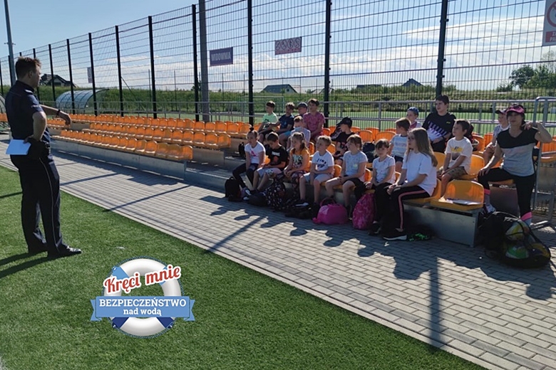 Wiedząc, jakie zagrożenie może nieść ze sobą odpoczywanie nad wodą i kąpiel, dzielnicowy przestrzegł dzieci przed korzystaniem z niestrzeżonych kąpielisk oraz wskazał na najczęstsze przyczyny utonięć, zwracając jednocześnie uwagę na sposoby ich unikania. Realizując założenia akcji „Kręci mnie bezpieczeństwo nad wodą” przybliżali regulamin konkursu filmowego pn.: „Artystyczny przeWODNIK”.
