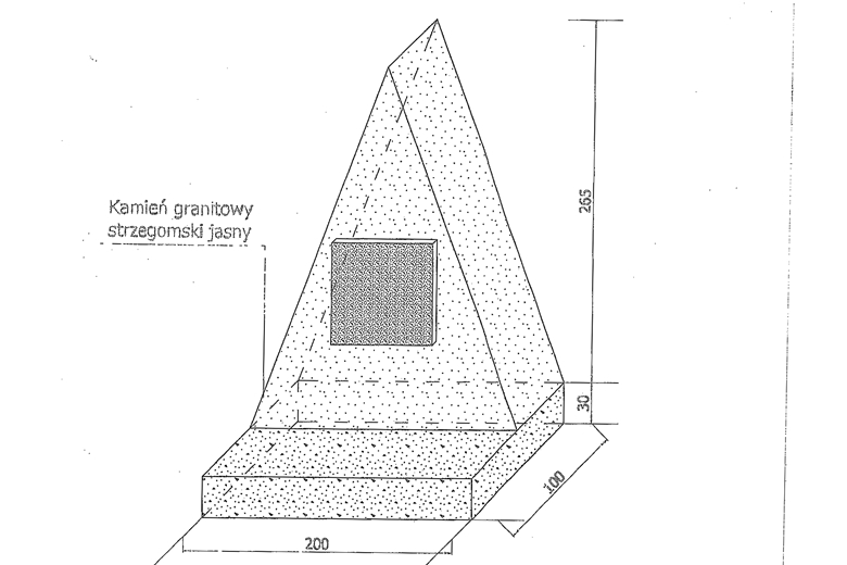 Obelisk będzie składał się z kamienia naturalnego w formie bryły o regularnych krawędziach. Wykona go i sfinansuje lokalna firma kamieniarska.
