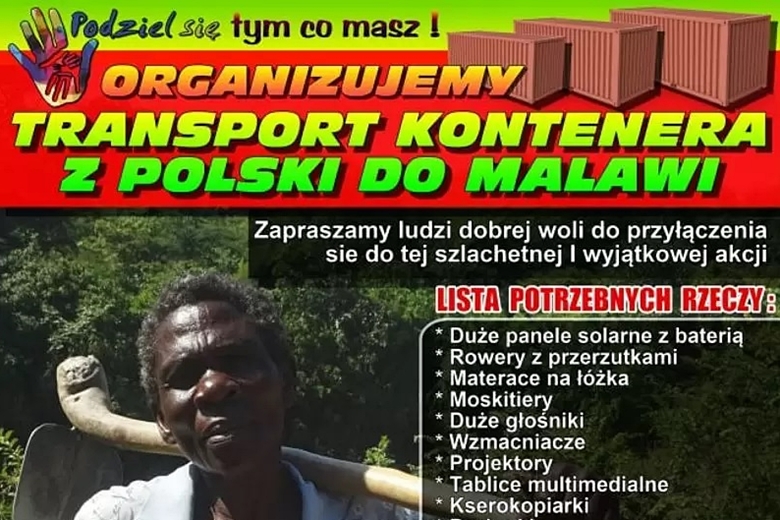 Wójt gminy Kostomłoty zaprasza mieszkańców gminy do wsparcia akcji zbiórki darów dla mieszkańców Malawi w Afryce.