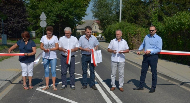 W przecięciu wstęgi wzięli udział partnerzy projektu tj. władze Powiatu i gminy Kostomłoty, przedstawiciele wykonawcy, radni, sołtys oraz mieszkańcy wioski.
