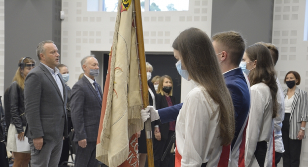 Pierwszoklasistów przywitali też starostwie powiatu: Krzysztof Szałankiewicz i Sebastian Burdzy, którzy pogratulowali im wyboru szkoły średniej, życzyli dobrych wyników i prawdziwych przyjaźni. Wicestarosta Burdzy przedstawił krótko ofertę Centrum Kultury Alternatywnej, gdzie będą odbywać się lekcje informatyki oraz języka angielskiego, a popołudniami ciekawe zajęcia artystyczne.