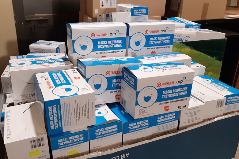 41 tys. maseczek ochronnych trafiło wczoraj z Dolnośląskiego Urzędu Wojewódzkiego do średzkiego starostwa.