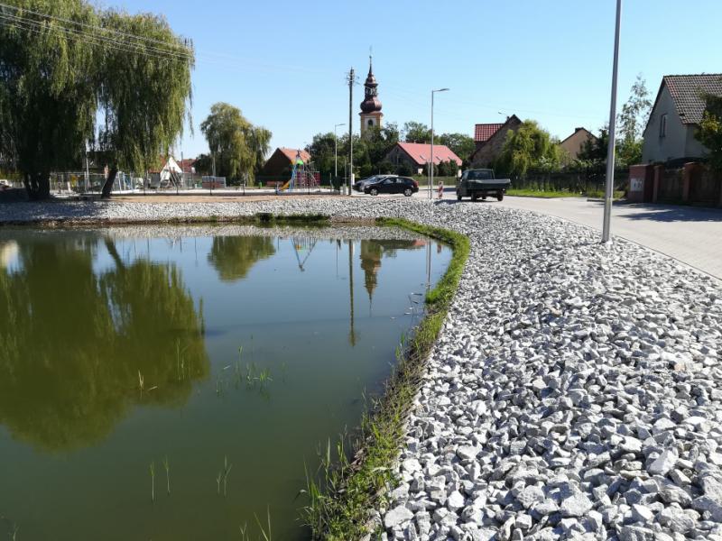 W ramach zadania odpompowano wodę ze zbiornika, oczyszczono go z nagromadzonego osadu dennego i umocniono górną część skarpy granitowym narzutem kamiennym rozłożonym na geowłókninie. Koszt odnowienia stawu to ponad 45 tys. złotych.