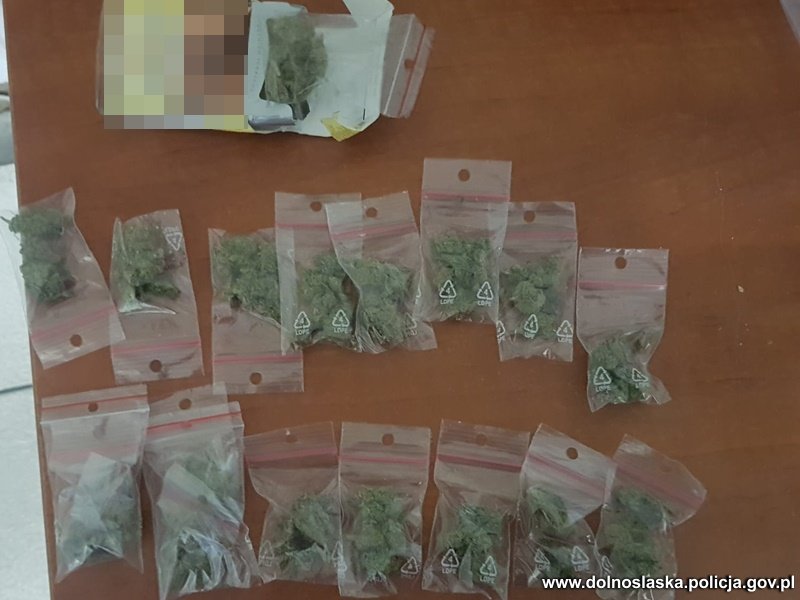 Funkcjonariusze przy użyciu sygnałów świetlnych i dźwiękowych zatrzymali pojazd do kontroli. - Kierującym okazał się 22-letni mieszkaniec powiatu średzkiego, który nie posiadał w ogóle uprawnień do kierowania. Z kolei pojazd nie posiadał też obowiązkowego wyposażenia w postaci gaśnicy. Podczas czynności mężczyzna zachowywał się bardzo nerwowo, czym wzbudził podejrzenia funkcjonariuszy. Jak się okazało, powodem jego zdenerwowania była saszetka, która leżała na siedzeniu pasażera, a właściwie jej zawartość. Mundurowi ujawnili w niej woreczek foliowy z zawartością suszu pochodzenia roślinnego, a także z zawartością kolejnych kilkunastu woreczków również wypełnionych z suszem - informuje asp. sztab. Marta Stefanowska oficer prasowa Komendy Powiatowej Policji w Środzie Śląskiej.
