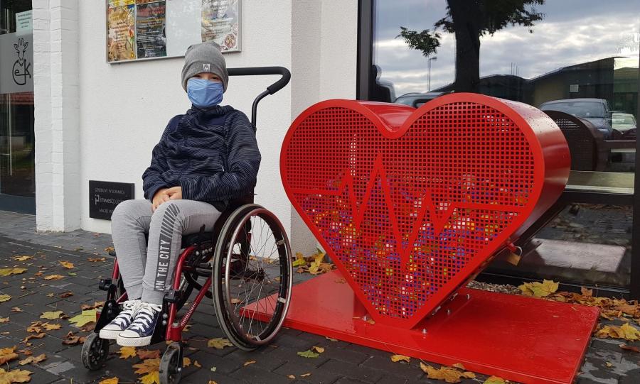 W piątek przed Centrum Kultury Alternatywnej stanął czerwony pojemnik w kształcie serca. Wrzucając do niego nakrętki, możesz wesprzeć leczenie i rehabilitację Piotrusia.