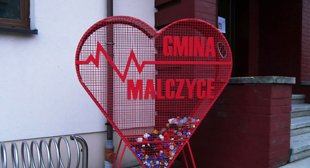 Mieszkańcy Malczyc mogą od dziś wyrzucić zbędne plastikowe nakrętki nie do kosza na śmieci a do wielkich serc, które dziś zamontowano w miejscowości.