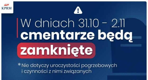 To efekt stale rosnącej ilości zachorowań w naszym kraju. Zakaz wstępu na cmentarze obowiązywać będzie w sobotę, niedzielę i poniedziałek. Nie dotyczy on uroczystości pogrzebowych i związanych z nimi czynnościami.