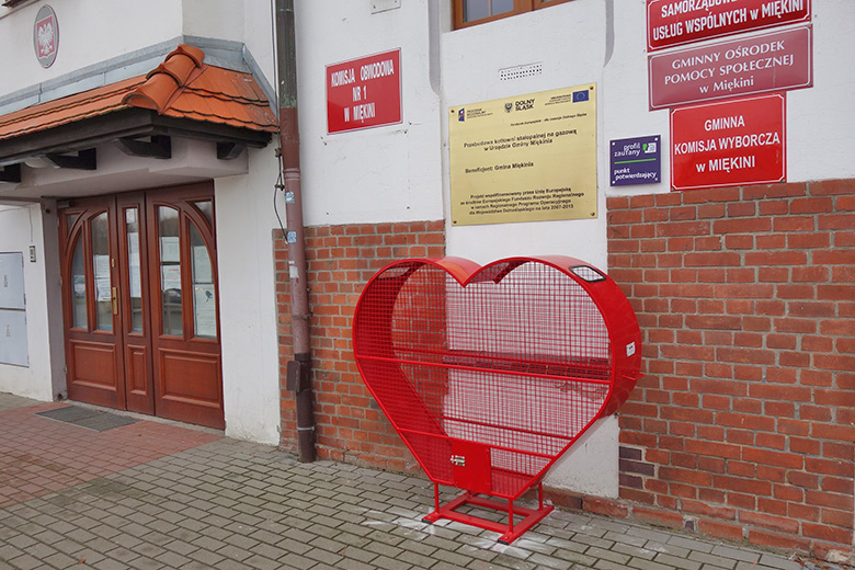 Podobne pojemniki stanęły już przy Centrum Kultury Alternatywnej w Środzie Śląskiej czy w gminie Malczyce. Dziś o zamontowaniu charakterystycznego serca poinformowali pracownicy Urzędu Gminy w Miękini. Do pojemnika można wrzucać dowolne plastikowe nakrętki.