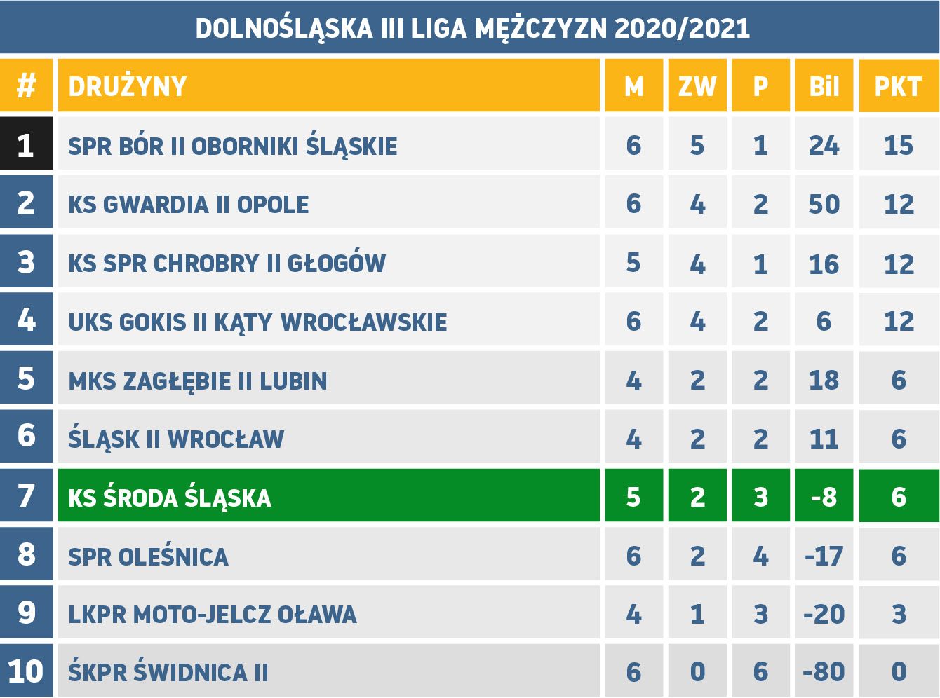 Aktualnie KS Środa Śląska zajmuje 7. lokatę, a już w najbliższą sobotę zagra w Mieście Skarbów zaległe spotkanie z rezerwami Zagłębia Lubin.