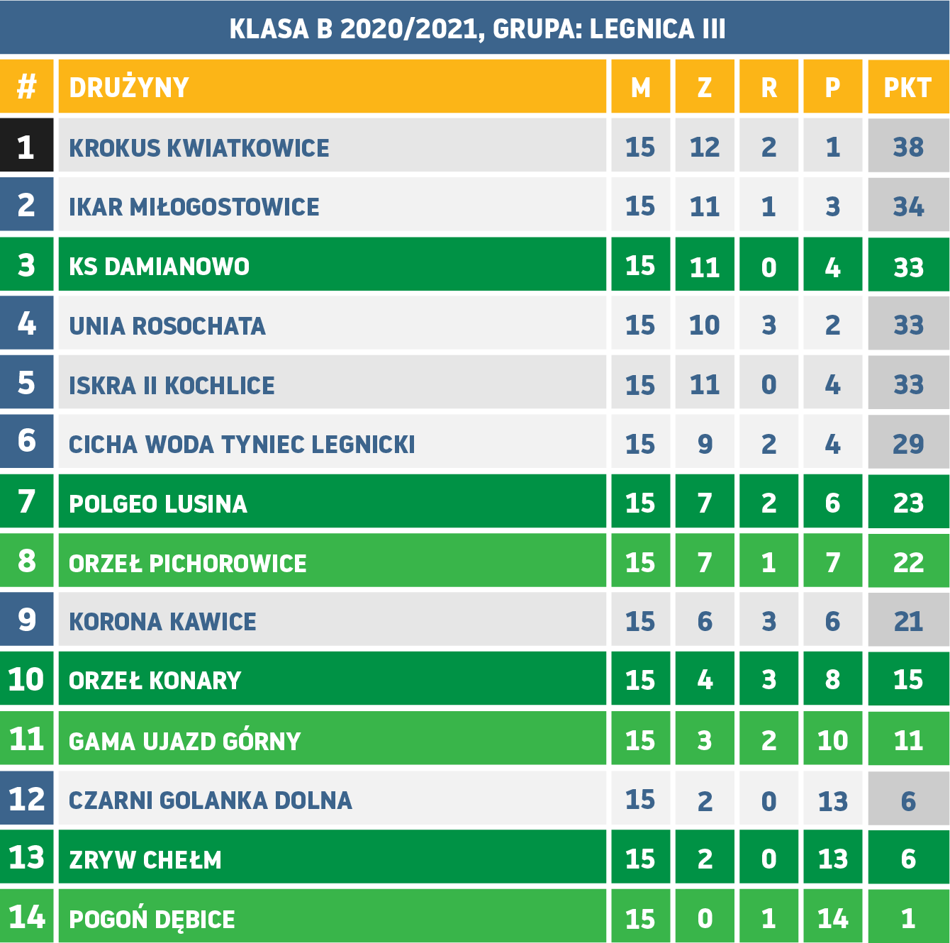 Wyniki 15. kolejki legnickiej B klasy gr. III