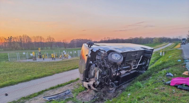 Prawdopodobnie doszło do zderzenia czołowego samochodu osobowego z autobusem. W wyniku wypadku pojazdy wylądowały w rowach po obu stronach jezdni. Niestety w wyniku poniesionych obrażeń dwie osoby zostały poszkodowane i przetransportowane do szpitala. Autobusem nie podróżowali pasażerowie.