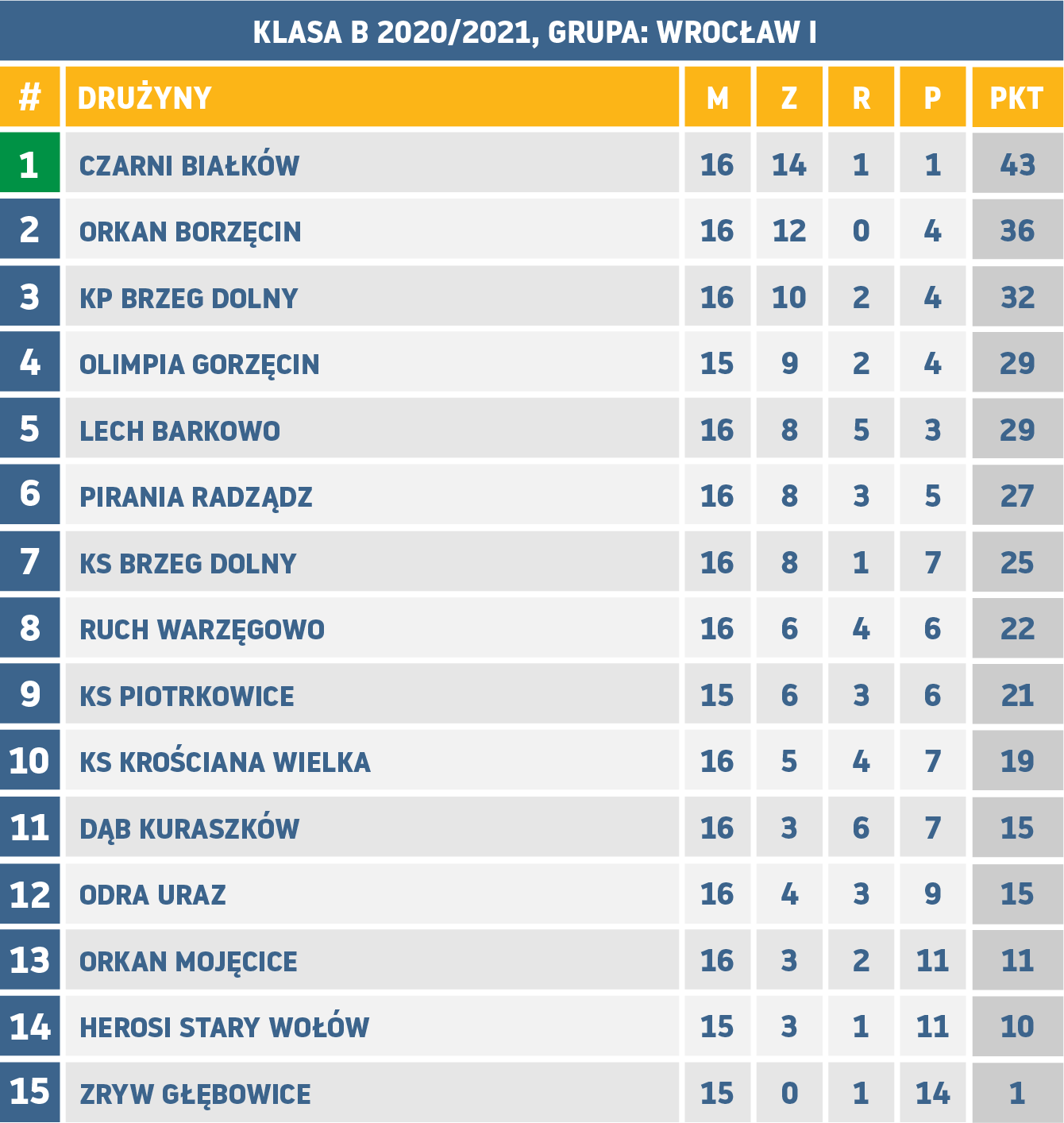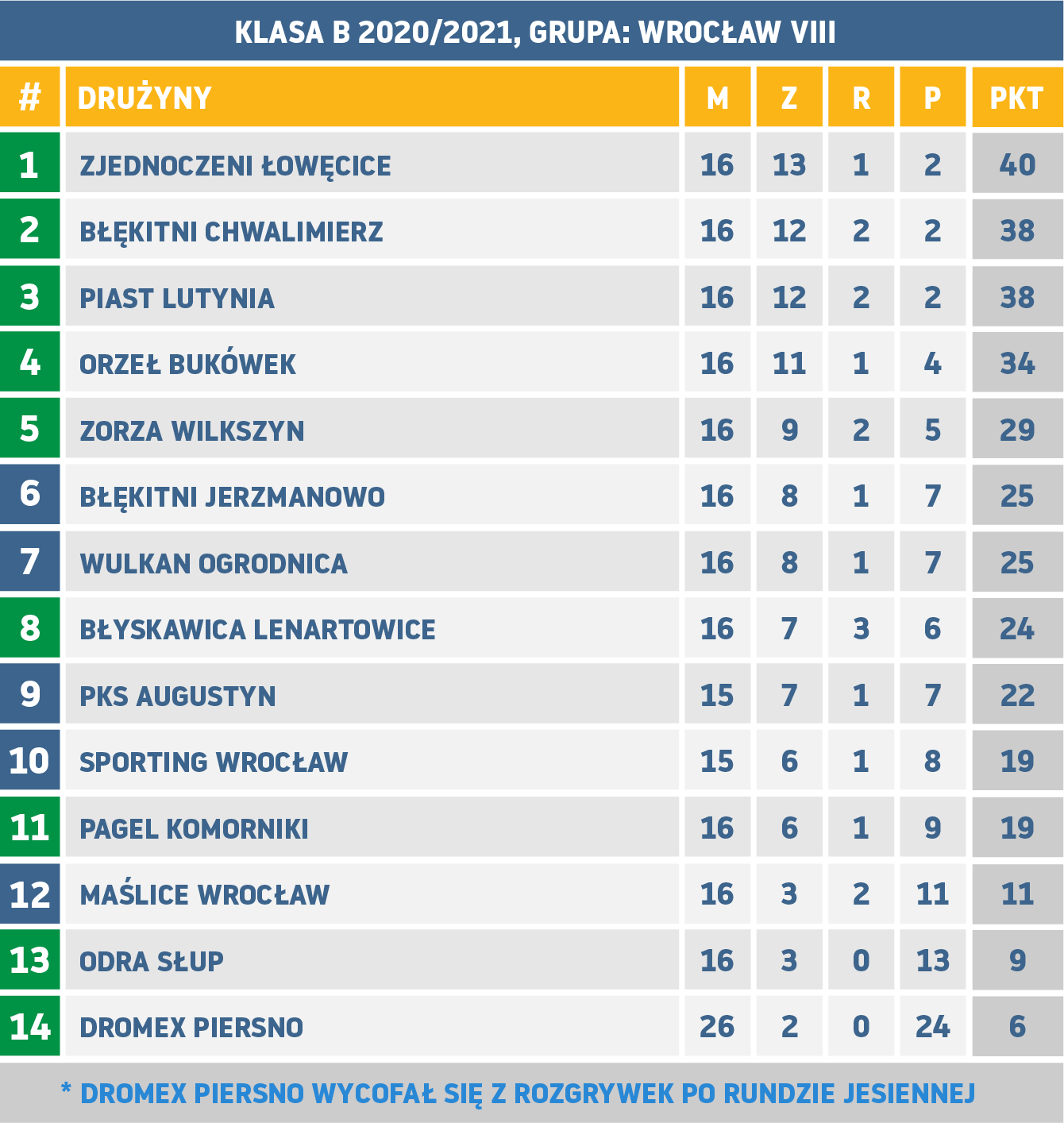 Wyniki 15. kolejki B-klasy, gr. Wrocław VIII