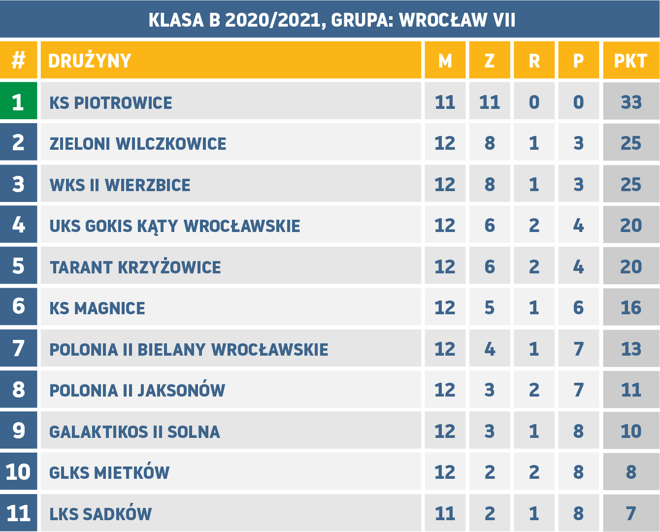Wyniki 13. kolejki B-klasy, gr. Wrocław VII