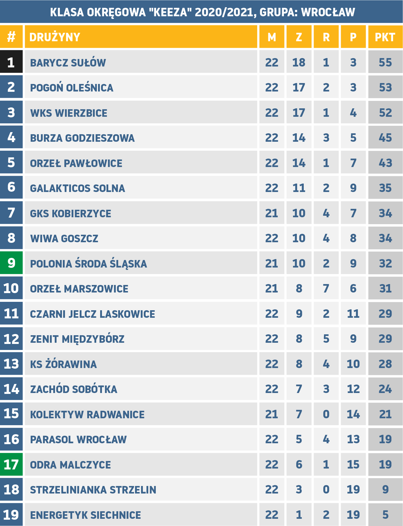 Wyniki 23. kolejki wrocławskiej klasy okręgowej