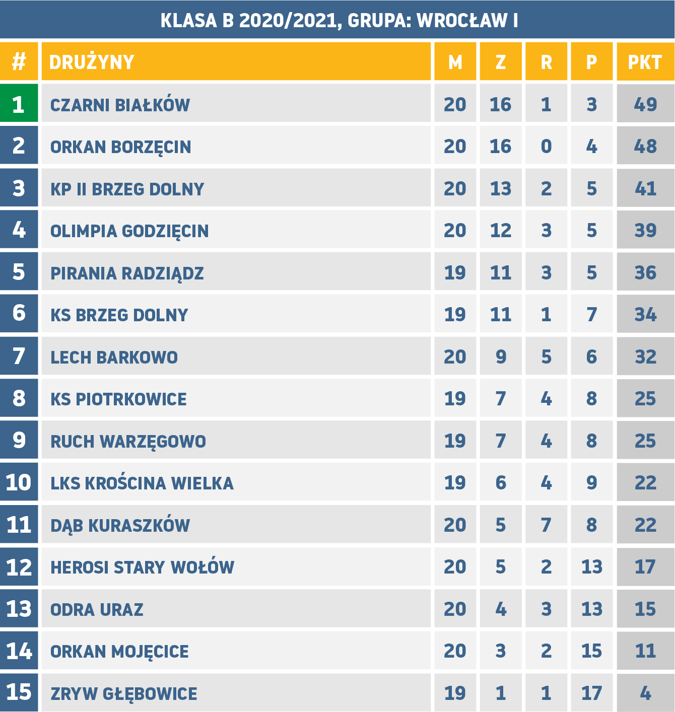 W pogoń za liderem ruszył Orkan Borzęcin. Zespół z okolic Żmigrodu depcze Czarnym po piętach, tracąc tylko jeden punkt. - Jeśli chodzi o sytuację w lidze to sami sobie utrudniliśmy sprawę, czując się już chyba zbyt pewnie z siedmiopunktową przewagą. Limit błędów został wyczerpany i mamy w planach zrobienie wszystkiego, by do końca sezonu nie stracić już żadnego punktu. To, że mamy za plecami Borzęcin dodatkowo nas motywuje, co widać po zaangażowaniu zawodników podczas spotkań - mówi Grzegorz Herbuś.