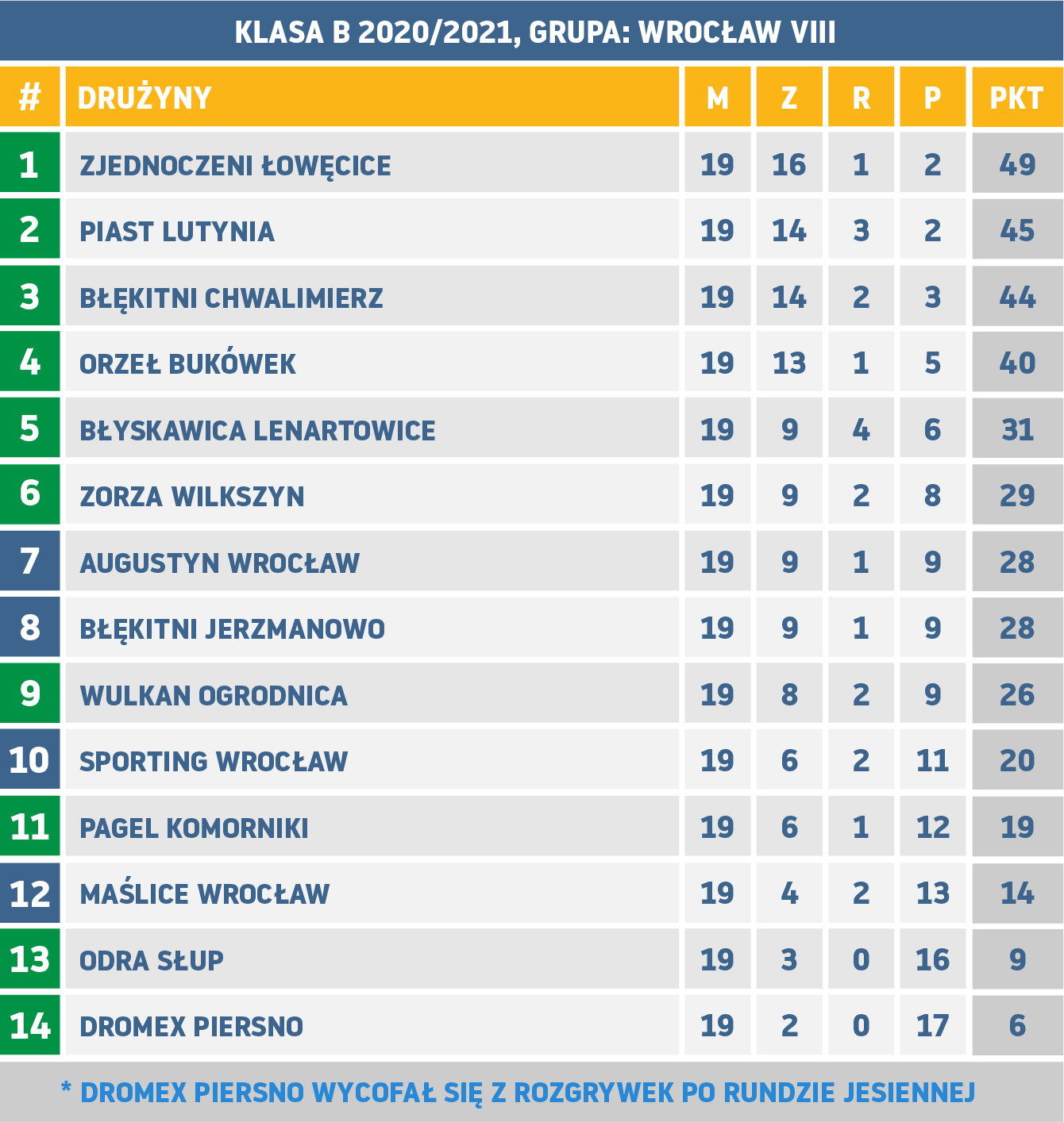 Wyniki 19. kolejki B-klasy, gr. Wrocław VIII
