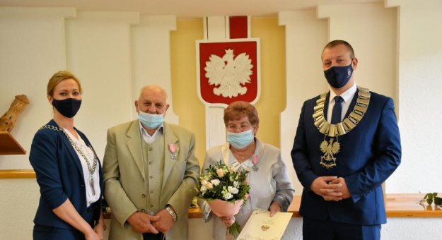 Dlatego też ta szczególna rocznica wiąże się z uhonorowaniem małżonków listem gratulacyjnym i Medalami za Długoletnie Pożycie Małżeńskie, przyznawanymi przez prezydenta RP. Takie właśnie odznaczenia z rąk pełniącego funkcję wójta gminy Malczyce Marcina Matyi odebrali nasi Jubilaci.
